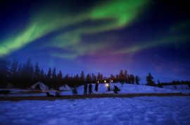北極圏にほど近い町、カナダ・イエローナイフ市内のホテルに滞在しながら、毎夜、町の灯りの影響が少ない郊外にオーロラ観賞に出かけます。ロッジやティピー(大型テント)で温かい飲み物やスナックを召し上がりながら、オーロラの出現をお待ちいただくスタイルです。現地ツアー会社オーナーのグラントさんは、世界中の有名な犬ぞりレースで受賞歴のあるドッグ・マッシャー(犬ぞり使い)で、先祖5代にわたり生活手段として犬ぞりを利用して犬たちと共に暮らしてきました。犬ぞりのオプションも充実していますので、アクティブにお楽しみいただきたい方は、昼間のアクティビティーとして犬ぞりのオプションへのご参加も検討ください。