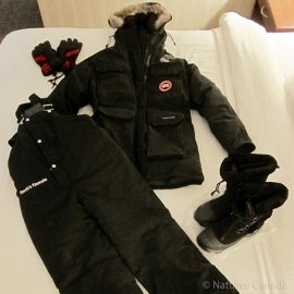 - 冬のイエローナイフの最低気温は通常 -20~30℃。寒波がくるとさらに冷え込むことがありますので服装にはご注意の上、しっかりした防寒具をご用意ください。なお、車内は暖房が利いております